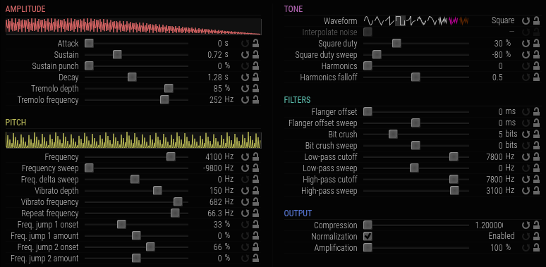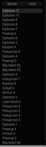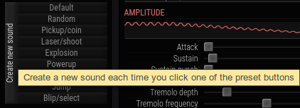 Jfxr Puede algunas veces repetir dos veces un sonido, si quieres que cree un sonido nuevo cada vez, puedes modificar Create new sound (crear nuevo sonido).