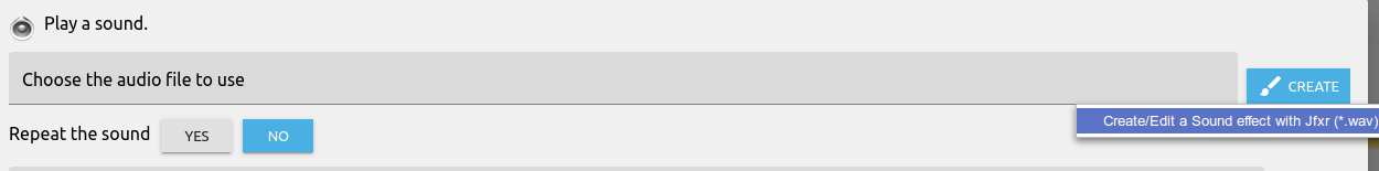 Puedes usar jfxr en lugar de introducir un archivo (.wav, etc..) haciendo click en Crear al lado del parámetro