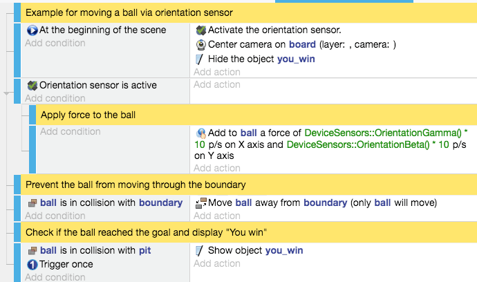 El sensor de orientación combina el giroscopio, el acelerómetro y la brújula en un sensor. Esto le permite controlar los objetos del juego girando ligeramente el dispositivo móvil en sus manos. Puede acceder a los datos de ubicación a través de los valores "alfa", "beta" y "gamma" que se explican en la siguiente sección.