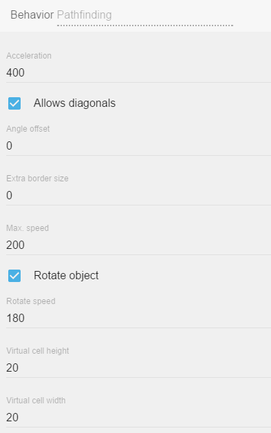 El comportamiento de búsqueda de rutas nos permite mover objetos a un destino seleccionado, así como marcar elementos como obstáculos. Los objetos que están marcados como obstáculos serán evitados por los objetos en movimiento.