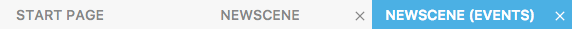 Desde el Editor de "Escena", seleccione y haga clic en la pestaña Editor de "Escena (Eventos)". Es la pestaña que se encuentra arriba ya la derecha de la escena.