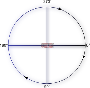 Par défaut, l'angle d'orientation de notre sprite est 0, ce qui est le côté droit de notre sprite, mais nous pouvons changer cela en changeant la valeur du décalage angulaire. Voici une image pour vous aider avec les coordonnées dans GDevelop :