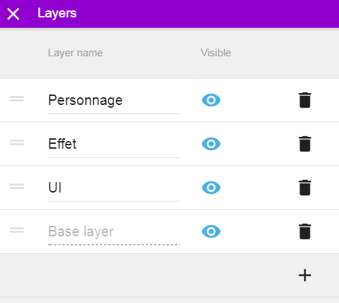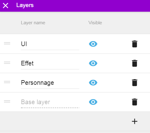 - Le calque Effets qui contiendra quelques effets visuels qui s'afficheront juste en-dessous du calque UI mais au-dessus du reste.