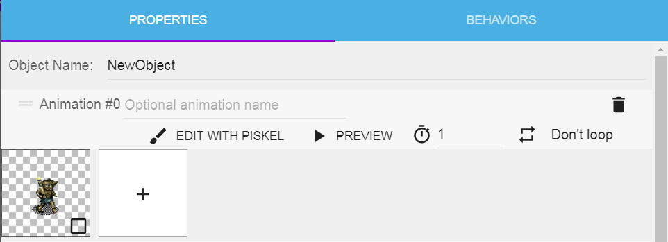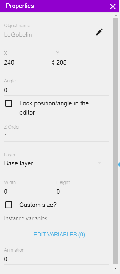 Il est un peu fade ce Gobelin, pour lui ajouter des animations, il faut retourner aux propriétés de l'objet. Pour cela , cliquez sur , puis sélectionnez Edit Object. Nous allons ajouter avec le +, et ajouter goblin_frame_1.png, goblin_frame_2.png et goblin_frame_3.png, soit :