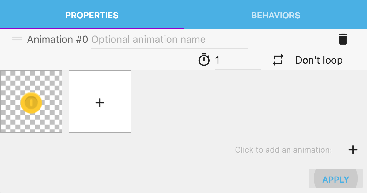Commencez par créer un nouvel objet Sprite et donnez-lui une animation contenant une image coinGold.png