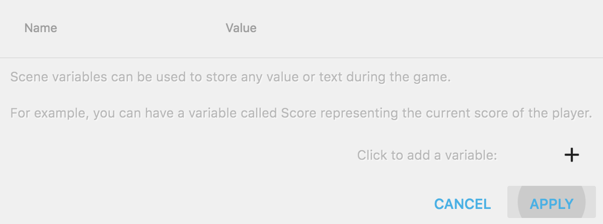 Les variables de scène (les plus fréquemment utilisées) sont privées (réservées) à chaque scène : leurs valeurs ne sont pas partagées avec les autres scènes de notre jeu. Elles sont utiles pour stocker des informations pertinentes pour la scène actuellement en cours, comme par exemple la vie du joueur ou un score.
