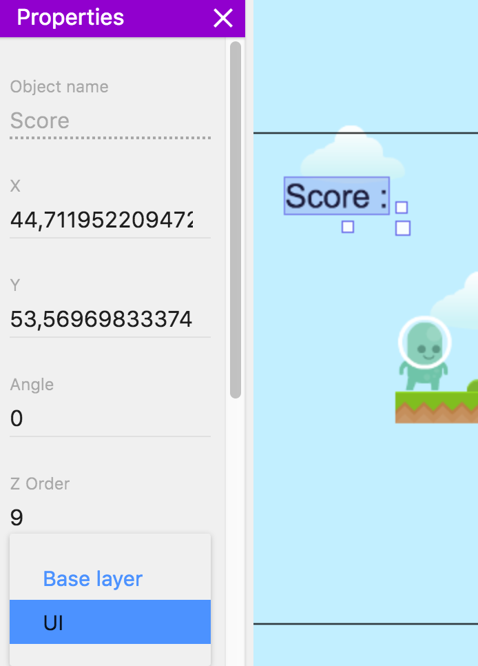 Pour finir, déplacez l'objet texte Score