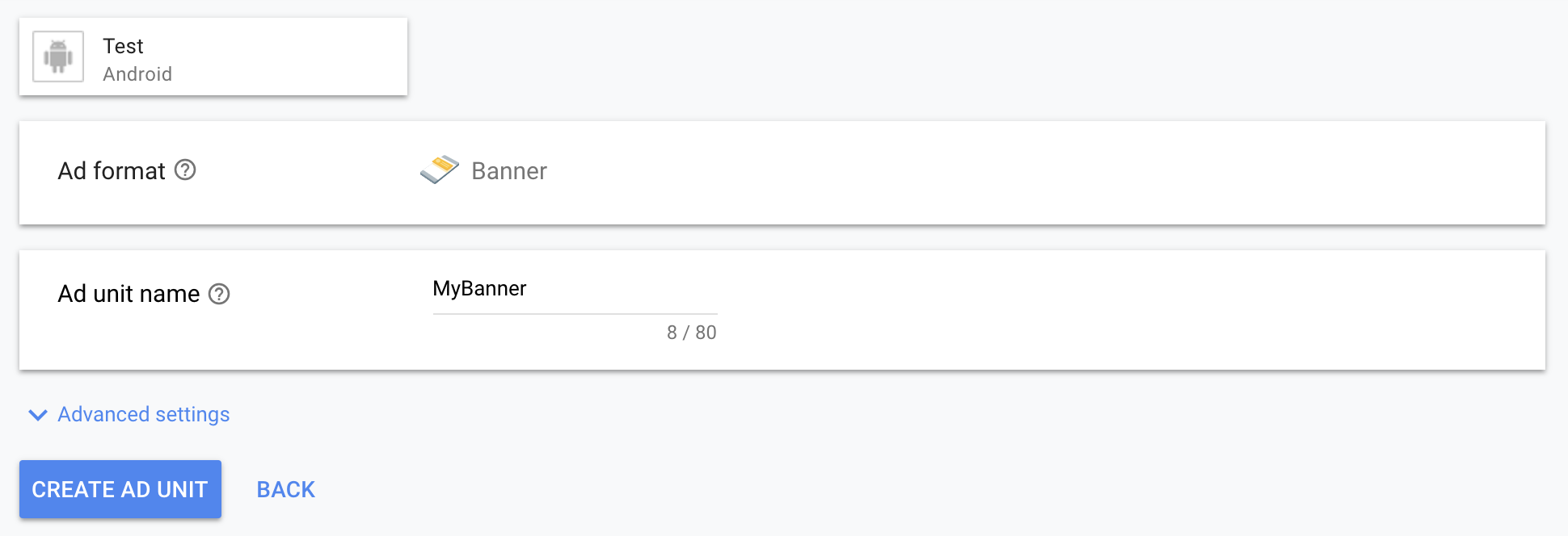 Enter the name for this ad unit and click on "Create Ad Unit".