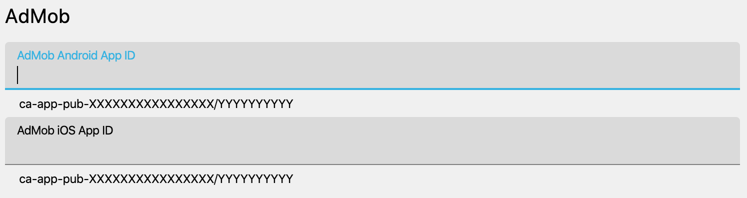 In the AdMob section, enter your app id, one for Android and one for iOS (though it might be the same).