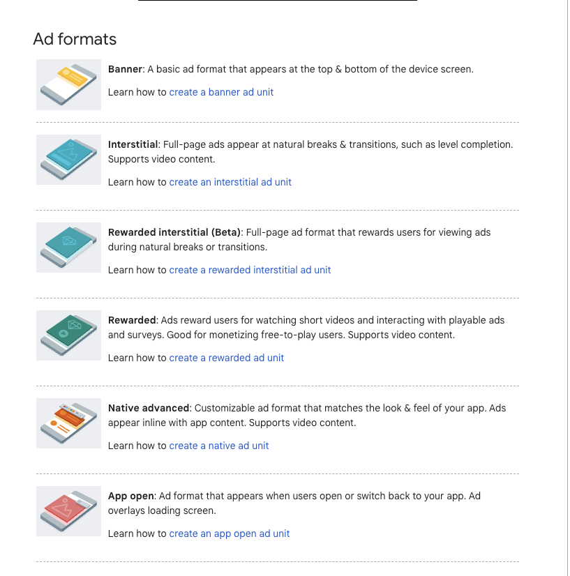 Follow the Google official documentation to learn more about the different types of ads.