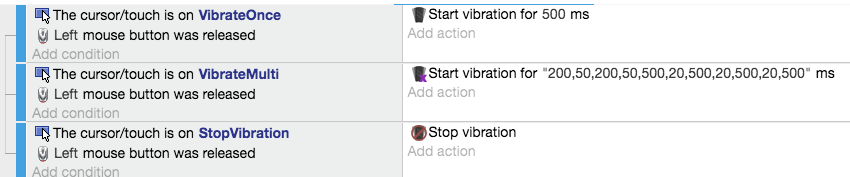 These actions give you access to the vibration functionality on mobile devices.