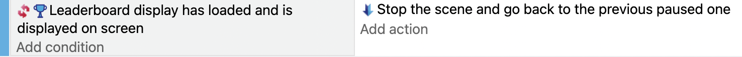 - Use the condition "Leaderboard display is loading" to trigger an action (display a text "Loading" for example)