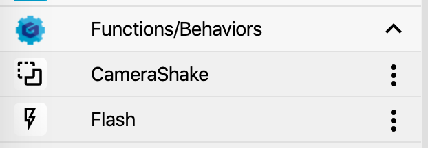 By default, a behavior is empty and does nothing. To add interactivity, you can add a new function (also called "method"). You'll be given the choice between some predefined functions, called lifecycle methods, or a custom function. Lifecycle methods will be called by the game engine automatically at some key moment during the game. Custom functions will be available as conditions, actions or expressions (like usual functions outside behaviors).