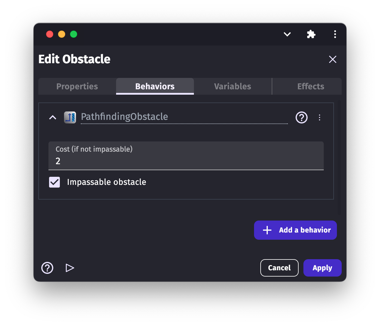 Choose which objects to avoid: the "Obstacle for Pathfinding" behavior