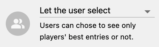 There are 2 ways of displaying your leaderboard. The first option is to display every entry submitted to your leaderboard, whereas the second one only displays the best entry for each player (identified by their player name).