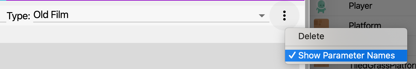 First, check out the name of the effect and the name of the parameter to change in the Effects tab. For this, activate the display of parameter names: