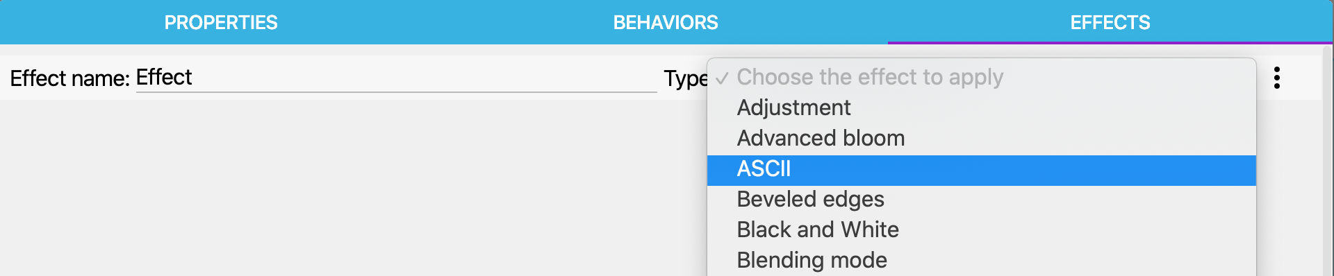 Click Add an effect. A new effect called “Effect” is created. This name will be useful later for modifying the parameters of the effect during the game.