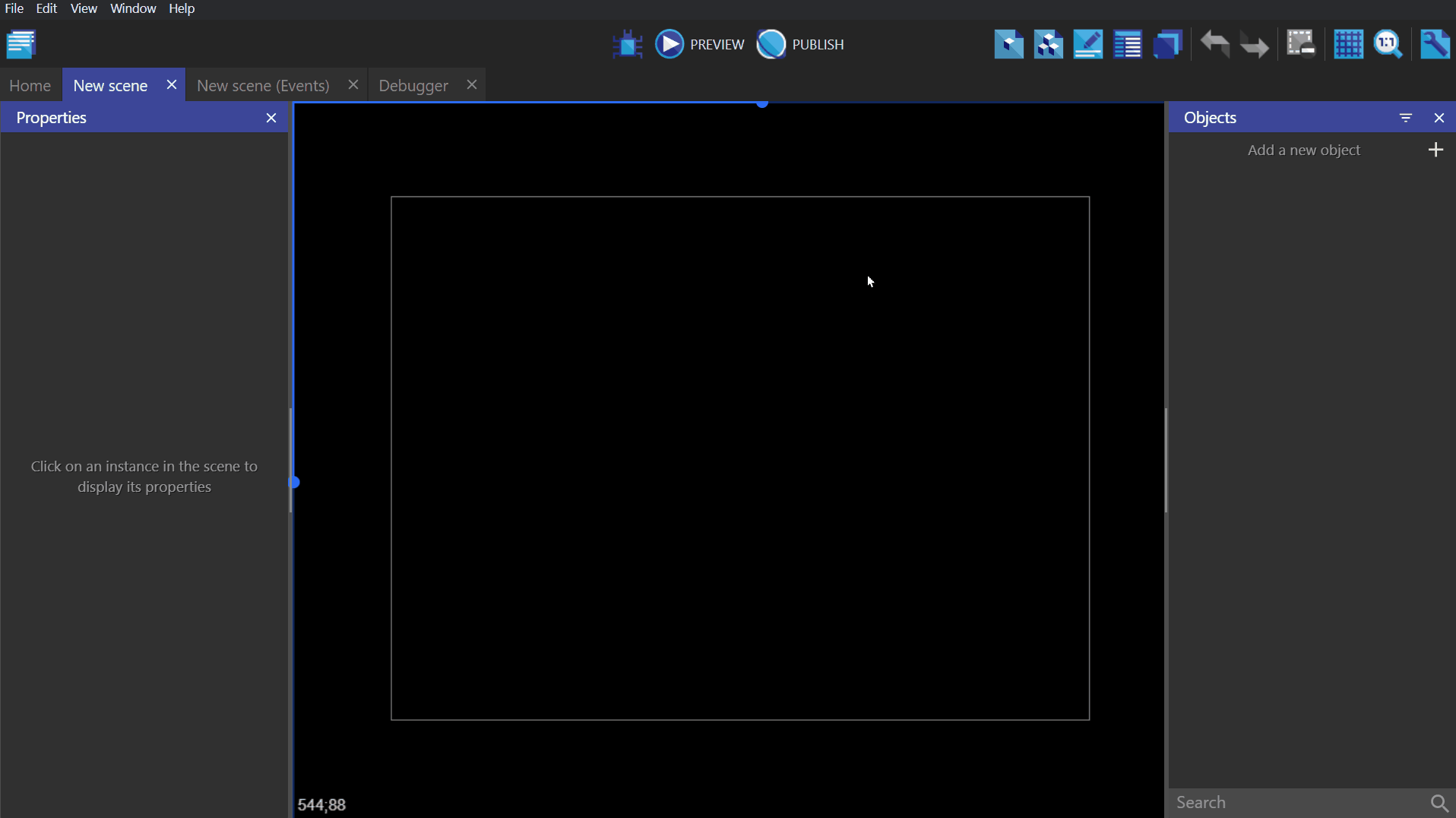 Open a blank game project in GDevelop