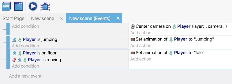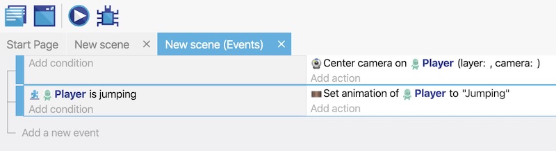 - Add the Is jumping condition to the "Player" object.