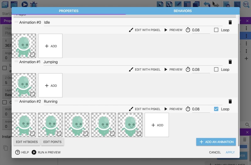 Step 3: Add a running animation to the player