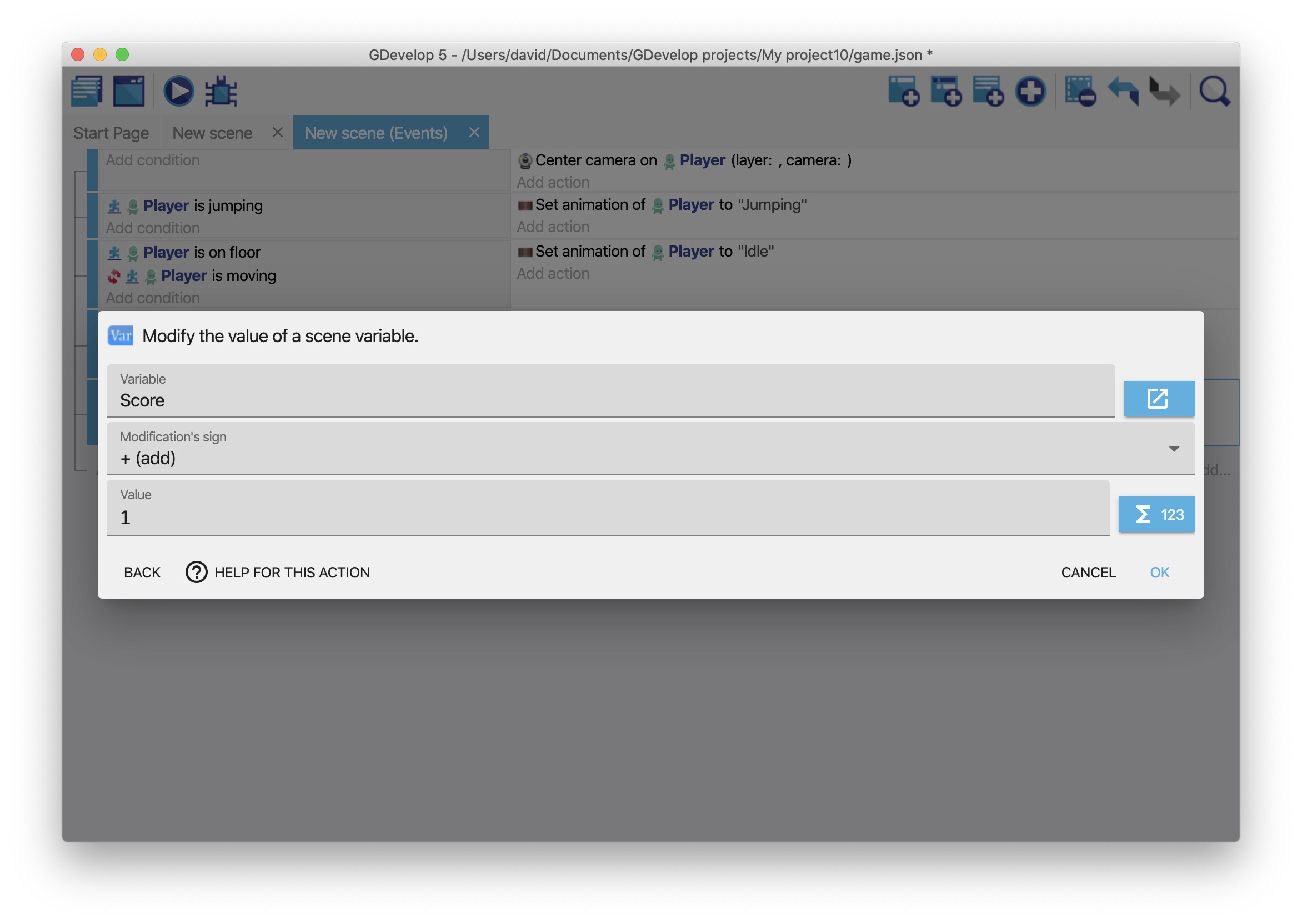 In GDevelop, expressions are similar to spreadsheet formulas or functions in a programming language. You can pass a value into an expression and receive a value.