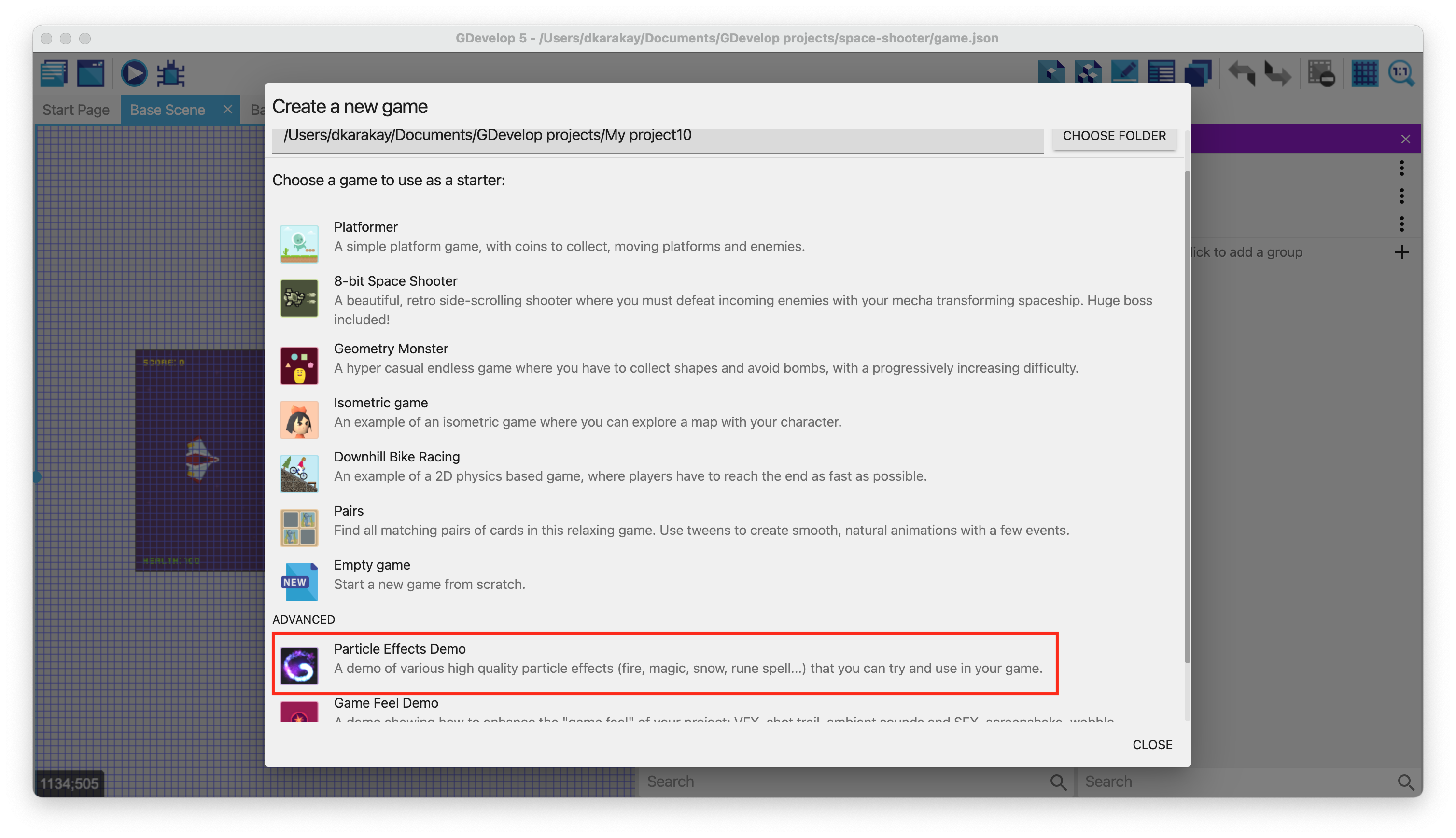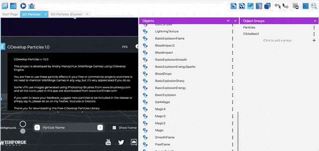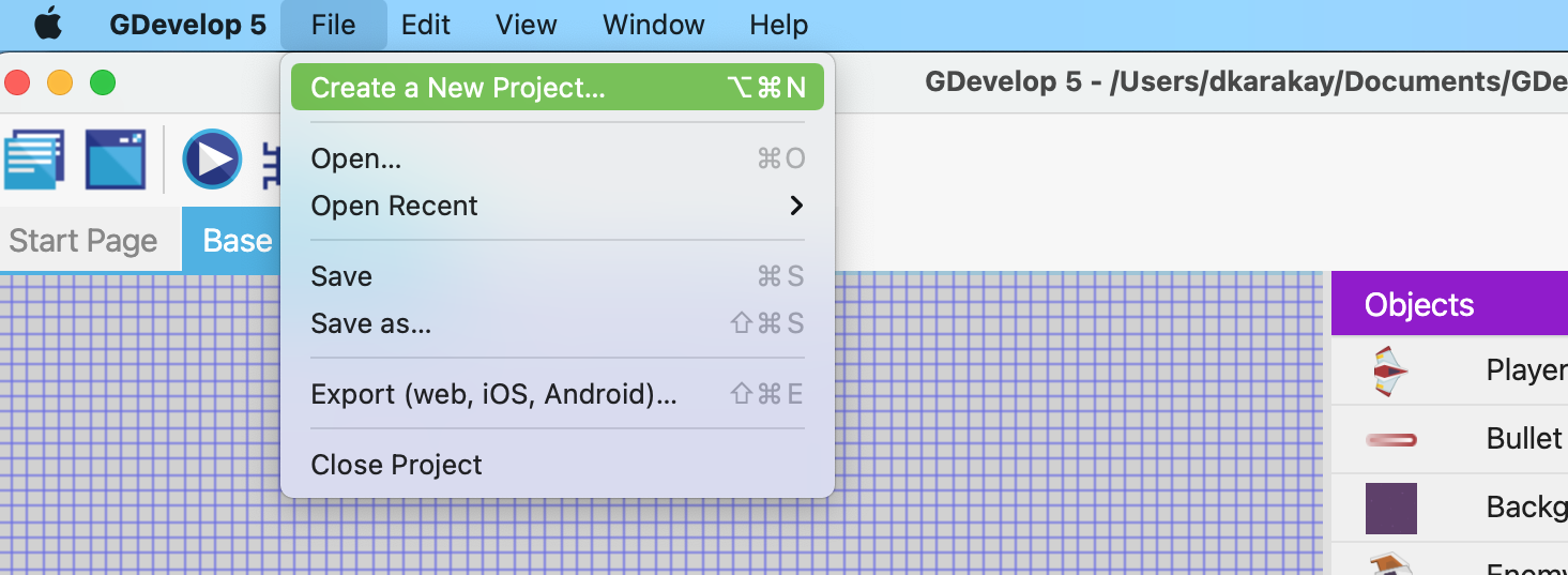 We will use a sample project of GDevelop to copy an explosion effect and put it in our game. Go to File and Create a new project.