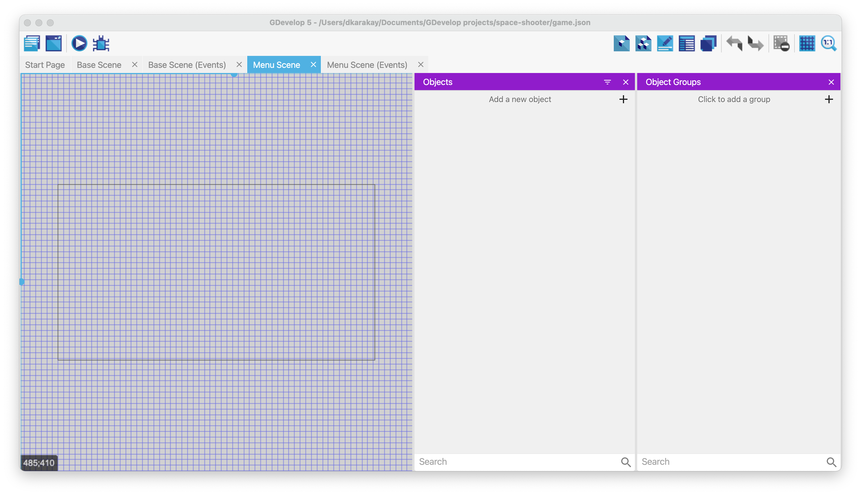 Open the project manager from the upper right corner, and create a new scene called Main Menu.