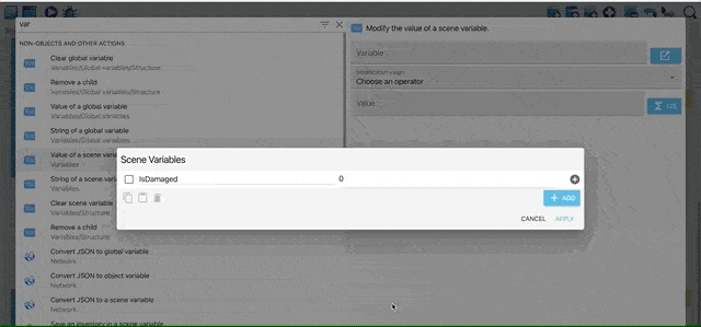 Now, we are going you use a new scene variable for the shield object. Create a new scene variable called "PowerupShield" to prevent getting any damage while using this powerup. Enter 0 as a default value.
