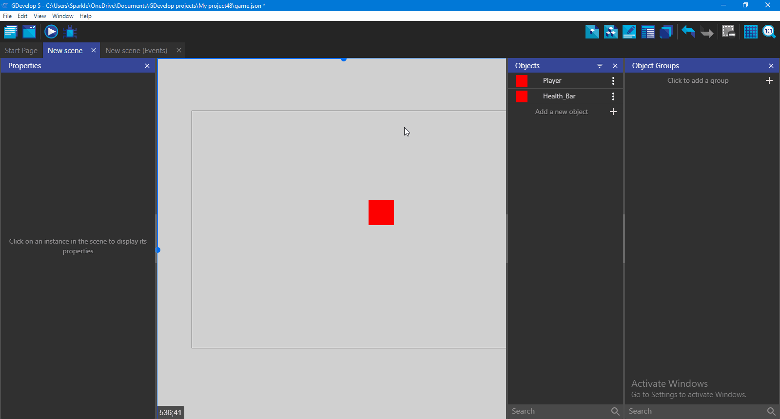- Double click Health Bar to open Object Editor
