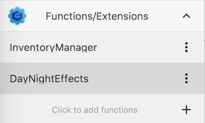 関数は「拡張機能」に分類されます。これらはゲームにインストールできる拡張機能と同じです。新しく追加した拡張機能も含めて、そのゲームの拡張機能のリストをプロジェクトマネージャーで見ることができます。