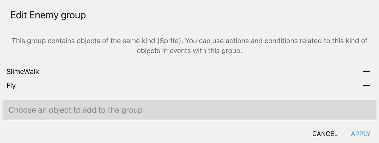 - グループの編集ダイアログで、グループに追加するオブジェクトを選択します。