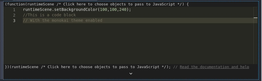 Code editor theme changes the look of the code editor in the JavaScript code block